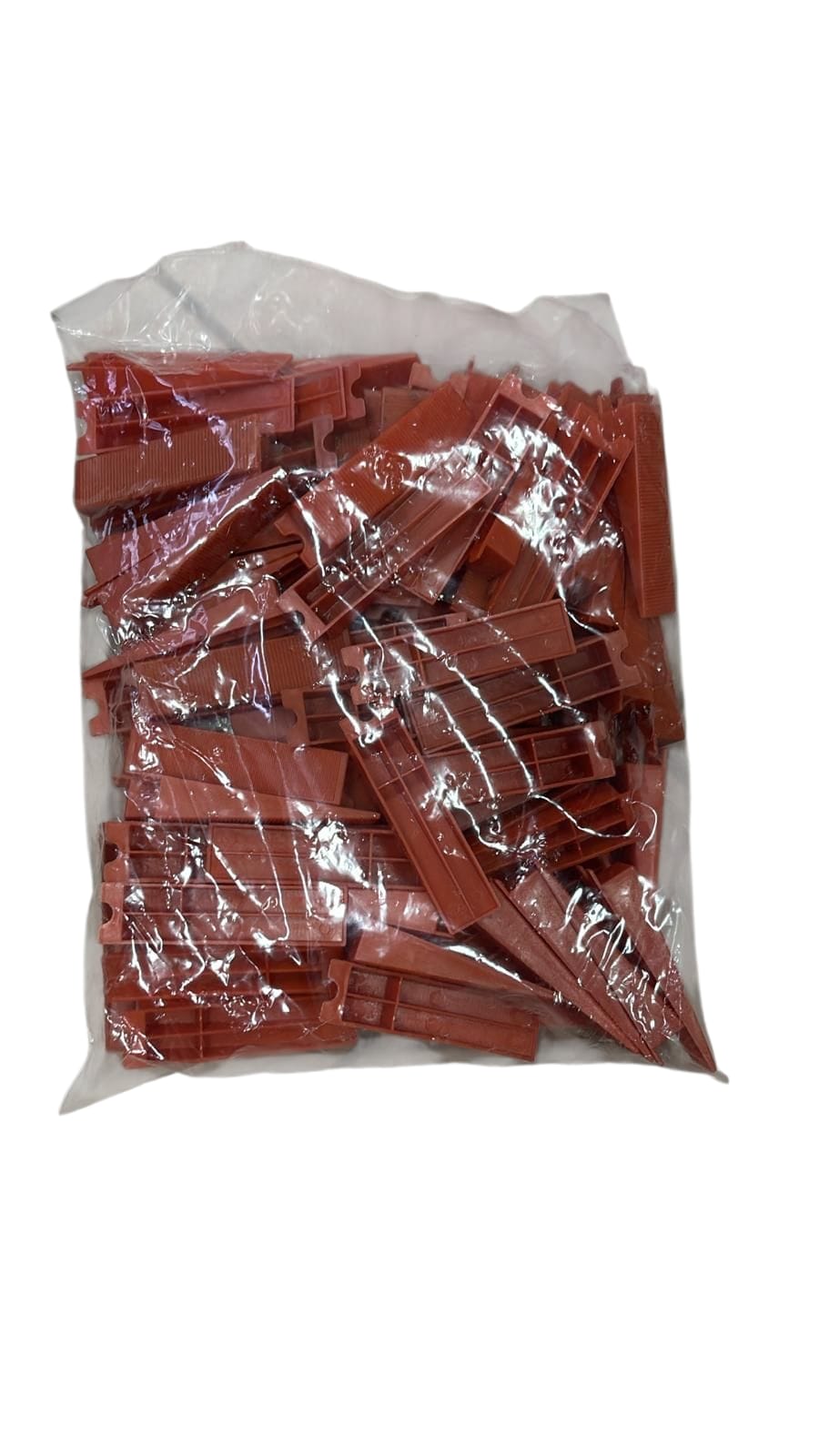 Sistem De Nivelare Plăci de ceramica, marmură și granit. Punga Clipsuri sau Pene (100 buc). Un montaj perfect, fără denivelări. Placarea cu marmură sau granit necesită precizie maximă. Orice diferență de nivel între plăci devine vizibilă imediat, mai ales la finisajele lucioase. Pentru un montaj perfect plan, se recomandă folosirea unui sistem de nivelare profesional cu clipsuri și pene. Soluția ideală pentru lucrări din piatră naturală.