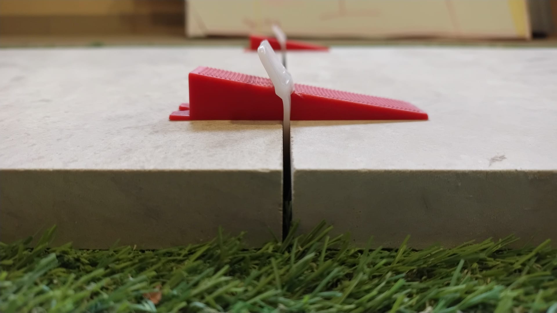 Sistemul de nivelare este format din clipsuri (baze) și pene reutilizabile, care mențin plăcile perfect la același nivel până la întărirea completă a adezivului.